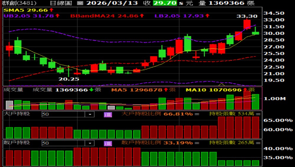 整體而言,群創近期股價震盪反映市場對公司轉型前景的不同看法。短線資金面出現調節,但隨著大戶持股比例上升、籌碼逐步集中,加上AI封裝與智慧座艙等新事業布局逐漸成形,市場也持續關注群創能否在產業轉型浪潮中建立新的成長動能。